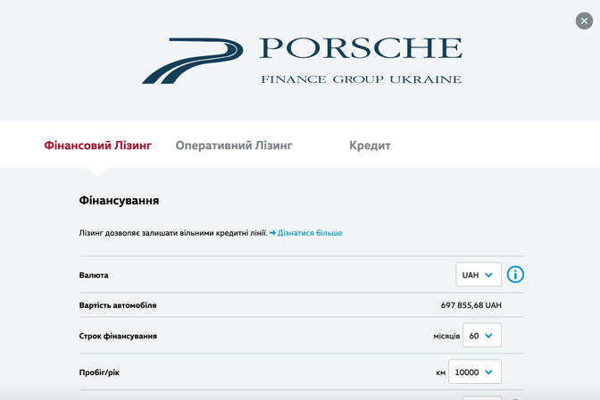 Сума платежу автоматично оновлюється, відповідно до зміни конфігурації автомобіля та умов фінансування від нашого партнера Porsche Finance Group Ukraine.